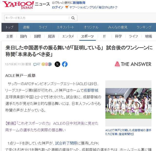 日本媒体直言,这就是体育的力量,成都蓉城球员也展现出了绅士风度,双方球队和球迷赛后也有温暖互动,引发了日本球迷的一片赞扬。还有不少日本球迷表示,太出色了!无论是成都蓉城的球员还是球迷,都非常棒!比赛拼尽全力,赛后彼此尊重,这是最重要的。